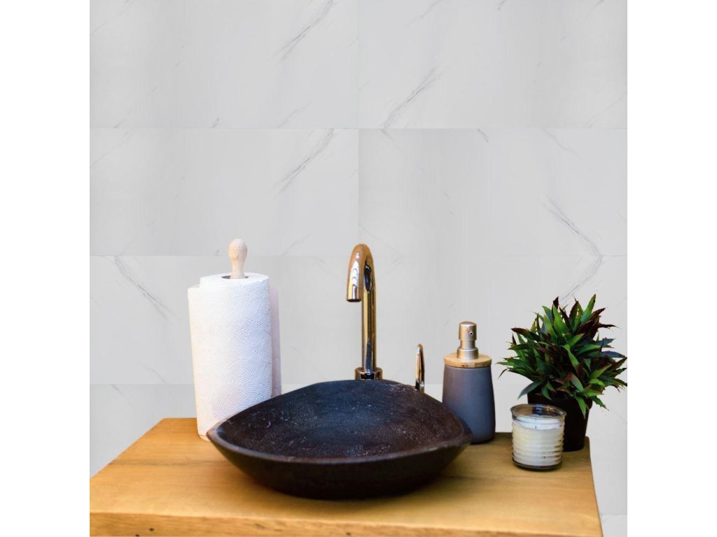 Každý kus obkladu má rovnaký vzor. Vďaka pravidelnému opakovaniu mramorovej textúry môžete jednotlivé pásy ľahko napojiť vedľa seba a dosiahnuť tak profesionálne pôsobiaci celok. Či už pokrývate veľkú stenu alebo menšiu plochu, výsledok vás môže príjemne prekvapiť.