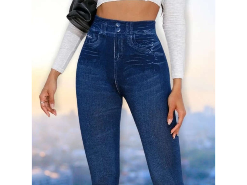 Elegantné elastické nohavice zaujmú svojim realistickým dizajnom, ktorý na prvý pohľad pripomína džínsy. Vďaka precíznemu spracovaniu pôsobia štýlovo a hodia sa na každú príležitosť – či už na bežné nosenie, do práce alebo na neformálnu večeru.