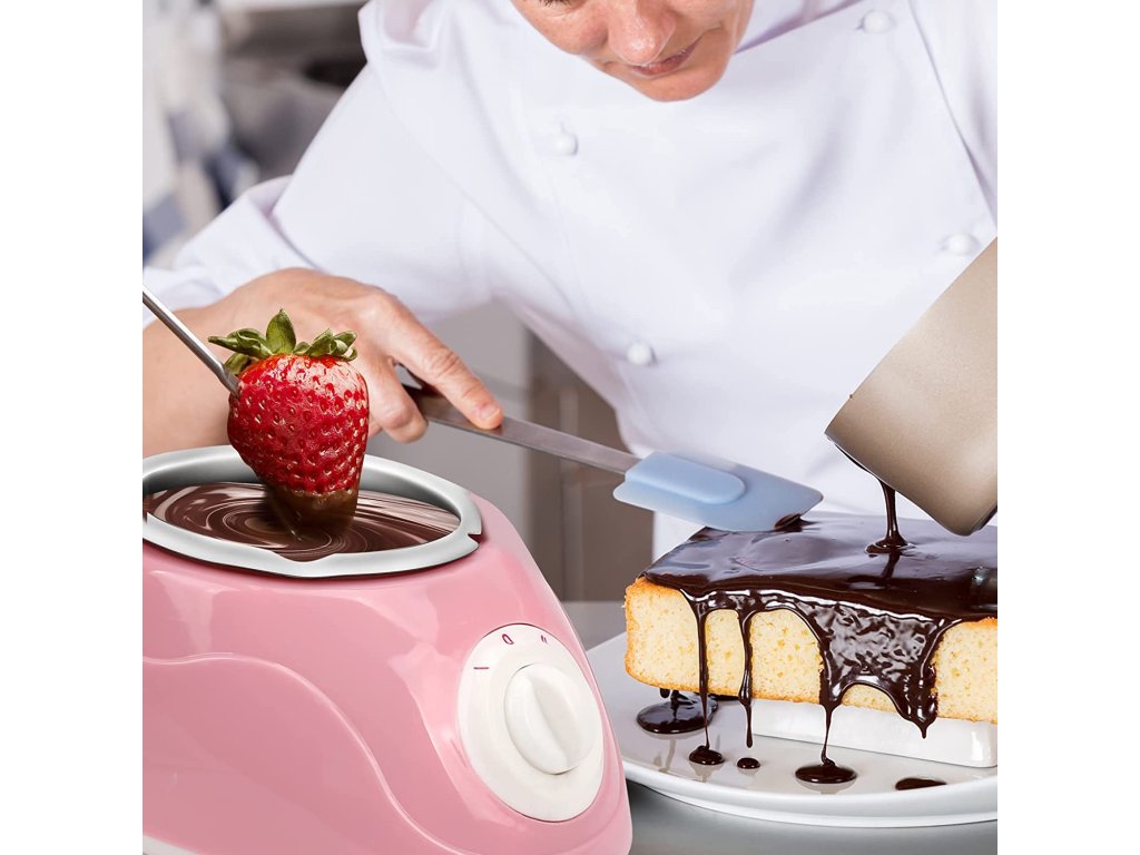 Čokoládová fontána je skvelé zariadenie na zdobenie dezertov čokoládovou polevou, do tekutej čokolády môžete namáčať aj kornútiky na zmrzlinu, oblátky, sušienky, vlastné pečené koláče alebo marshmallow. Stane sa neoddeliteľným pomocníkom pri pečení.
