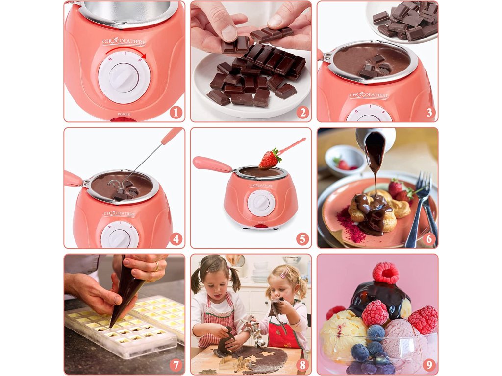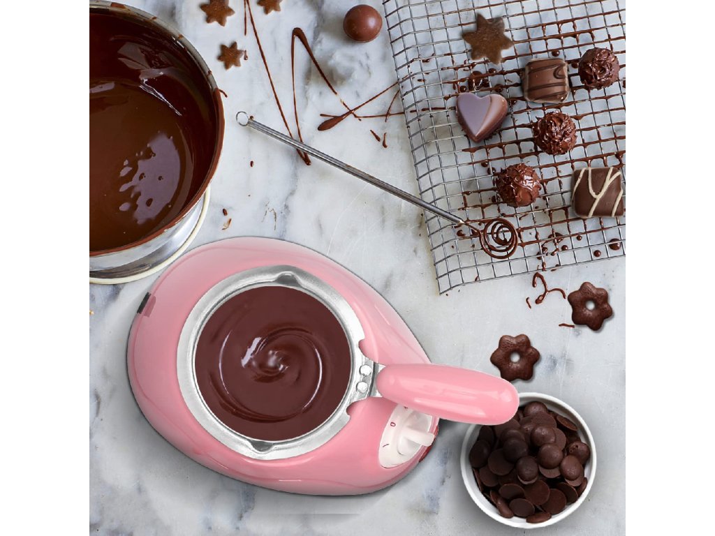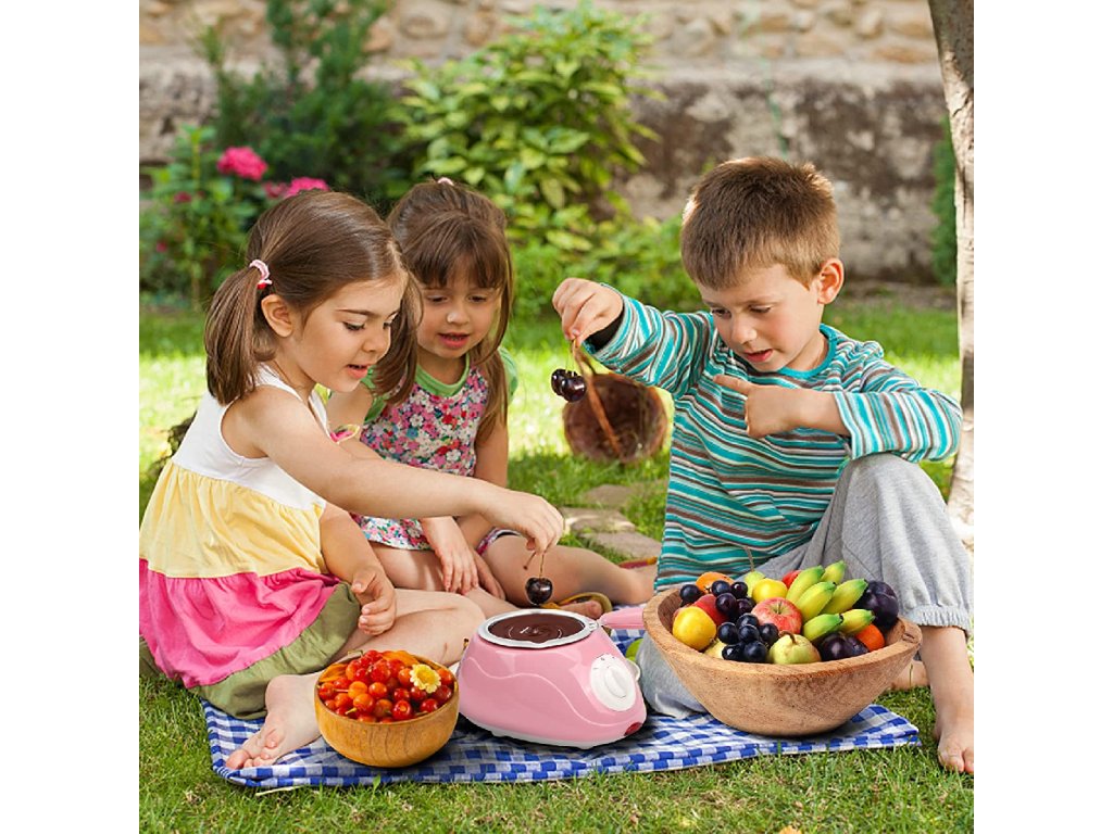 Jemná a bohatá chuť tekutej čokolády doplnená o šľahačku alebo obľúbené korenie je výnimočným zážitkom, ktorý sa postará o správnu náladu na každej oslave. Namáčaním kúskov čerstvého ovocia do čokolády môžeme dodatočne pripraviť zdravšie občerstvenie pre naše deti. S tým Vám pomôže tento kvalitný hrniec na čokoládové fondue.