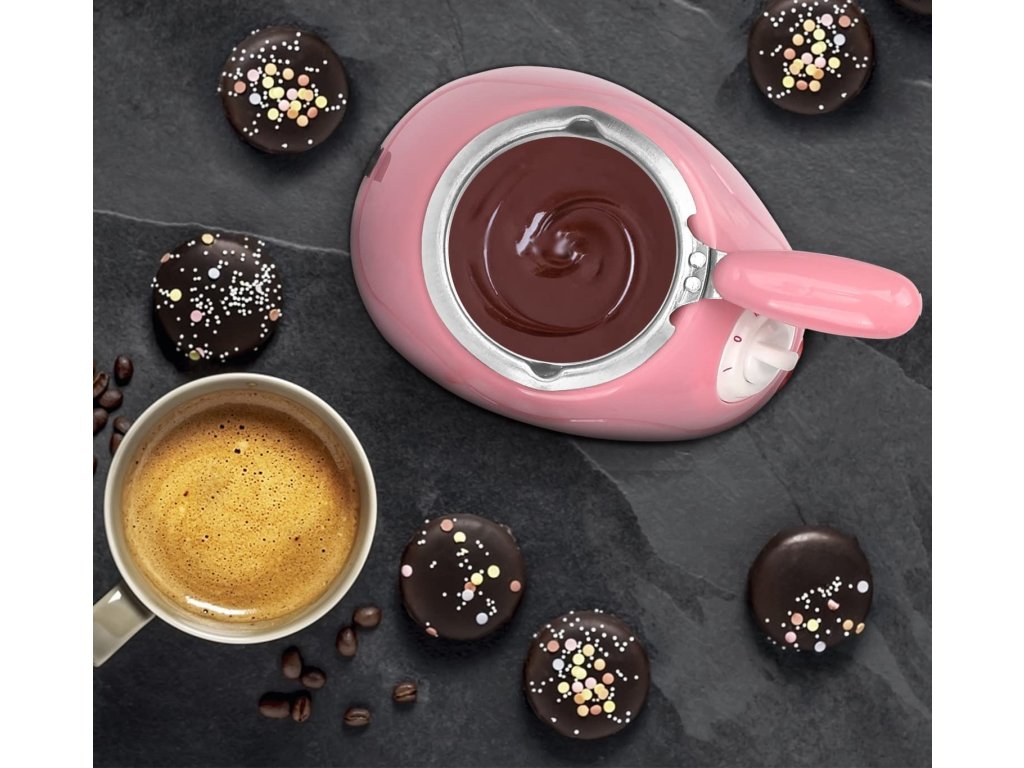 Tento malý výkonný hrniec je kompaktný, ľahko sa uskladní a nezaberie veľa miesta. Vďaka svojím rozmerom a výkonnosti je ideálný ako domáci hrniec aj pre menej osôb. Vďaka výkonnému ohrievaciemu telesu udržuje dokonale teplú rozpustenú čokoládu.