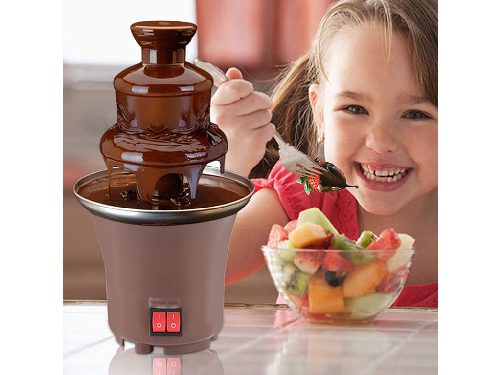 Jemná a bohatá chuť tekutej čokolády doplnená o šľahačku alebo obľúbené korenie je výnimočným zážitkom, ktorý sa postará o správnu náladu na každej oslave. Namáčaním kúskov čerstvého ovocia do čokolády môžeme dodatočne pripraviť zdravšie občerstvenie pre naše deti. S tým Vám pomôže táto kvalitná fontána na čokoládu.