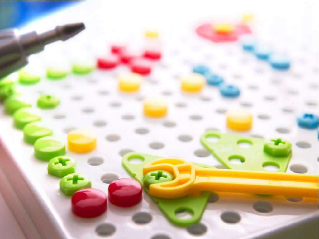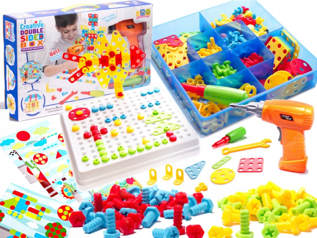 Deti môžu vytvárať rôzne vzory podľa kariet alebo sa pustiť do úplne vlastných návrhov. Vďaka širokej škále dielikov rôznych tvarov a farieb sa ich kreativita posúva na novú úroveň. Každé skrutkovanie sa stáva malým umeleckým dielom.