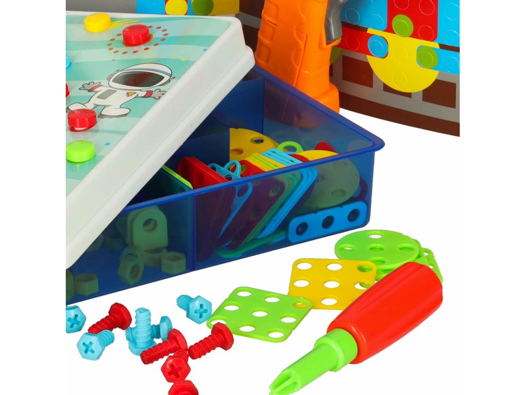 Doprajte deťom vžiť sa do úlohy skutočných domácich majstrov. Unikátna stavebnica s funkčnými nástrojmi im umožní skrutkovať, skladať a budovať vlastné konštrukcie. Každý obrázok, ktorý vytvoria, im prinesie pocit úspechu a hrdosti. Navyše získavajú základné technické zručnosti, ktoré im môžu pomôcť aj v budúcnosti.