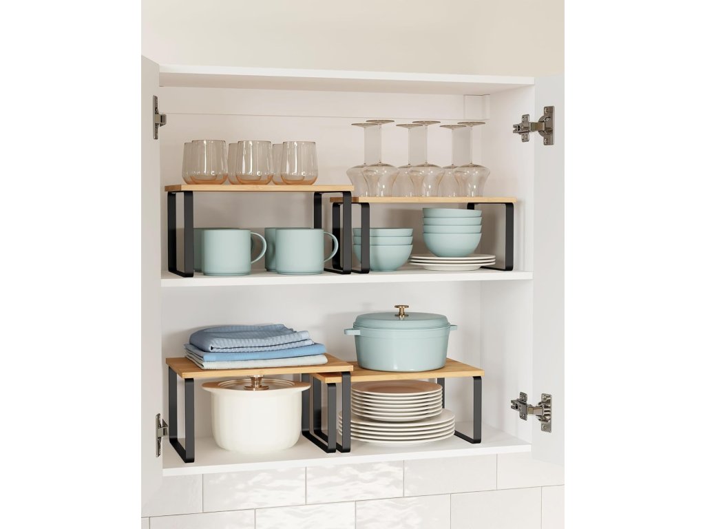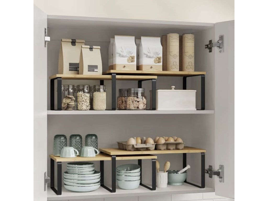 Kvalitná bambusová súprava kuchynských políc poslúži nielen v kuchyni – vďaka svojej ľahkej hmotnosti (iba 1,3 kg) a kompaktným rozmerom sa ľahko premiestňuje, a preto ju využijete aj na chalupe, v kúpeľni, špajze či kancelárii.