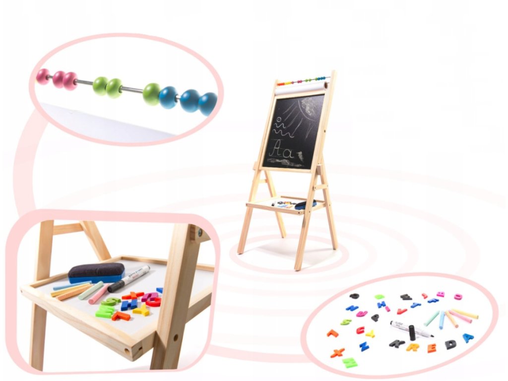 Multifunkčná magnetická tabuľa – obojstranná s počítadlom je ideálnym pomocníkom pri učení aj hre. Vďaka magnetickému povrchu a priloženým písmenám môžu deti vytvárať vlastné nápisy, cvičiť si slovnú zásobu alebo si kresliť jednoduché obrázky.