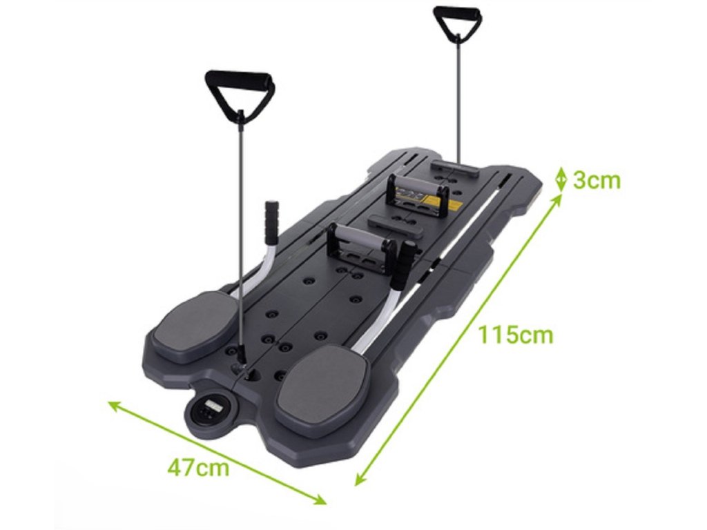 Unikátna pilatesová doska s LCD displejom umožňuje komplexný tréning svalov celého tela. Cvičenia na tejto doske aktivujú brušné, chrbtové, sedacie svaly i horné končatiny a zlepšujú koordináciu. Vďaka plynulému pohybu a ergonomickému dizajnu sú tréningy bezpečné, pohodlné a účinné.