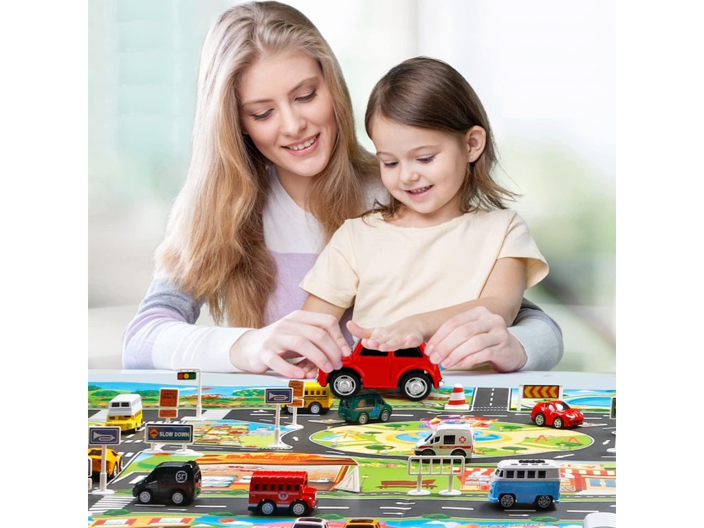 Jedinečná hracia podložka s dopravnými značkami posúva hru na úplne novú úroveň. Súčasťou balenia je až 18 realistických dopravných značiek, ktoré si dieťa môže samé rozmiestniť po podložke podľa vlastných predstáv. Vďaka tomu vzniká každým dňom nové a nové mesto, ktoré dieťa buduje, upravuje a riadi podľa vlastnej fantázie.