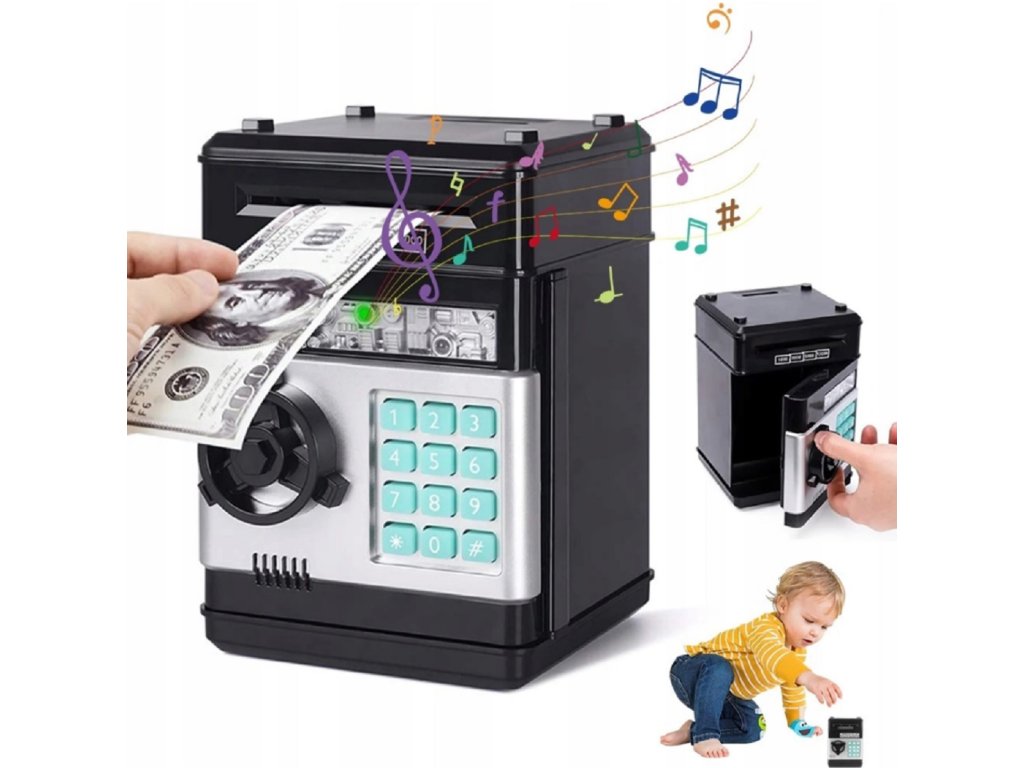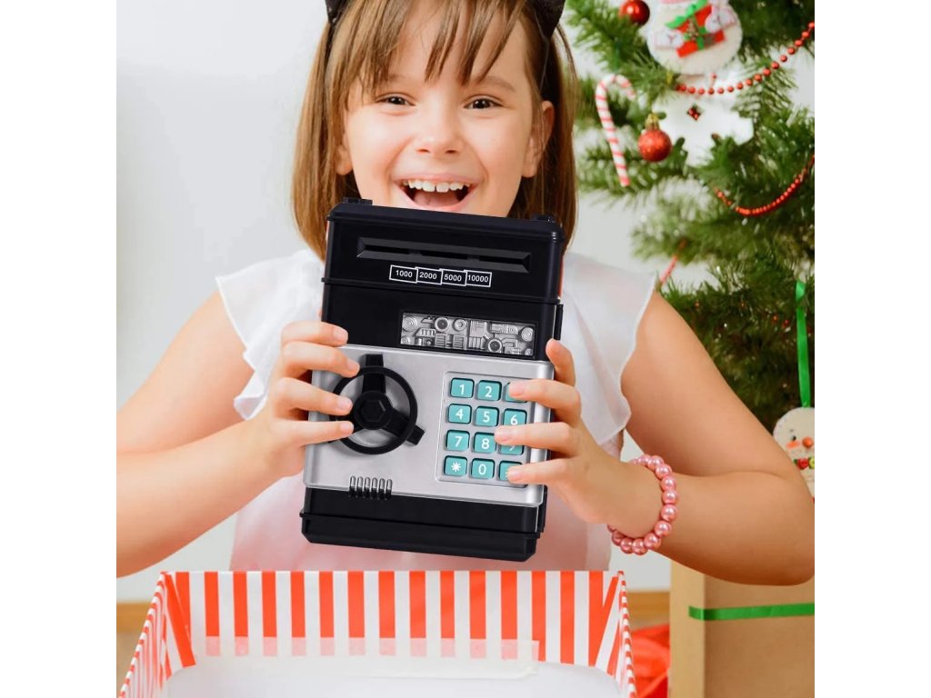 Táto jedinečná pokladnička umožňuje deťom ukladať bankovky aj mince, pričom funguje ako skutočný bankomat a trezor. Všetky úspory sú bezpečne chránené a prístupné len po zadaní správneho kódu. Tak sa z obyčajného sporenia stáva malý finančný rituál, ktorý deti skutočne baví.