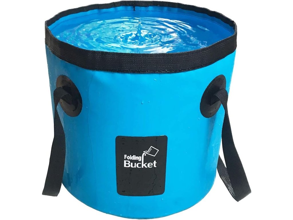 Na výrobu originálneho skladacieho vedra bola použitá pevná a vodeodolná PVC plachta, ktorá odolá každodennému používaniu aj náročnejším podmienkam pri vode. Materiál je zároveň dostatočne flexibilný, aby umožnil jednoduché skladanie.