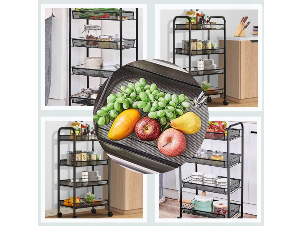 Praktický kuchynský policový stojan - mobilný regál na kolieskach