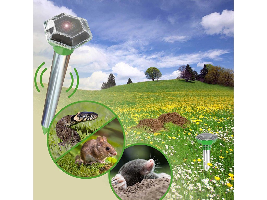 Spoznajte maximálne ekologický spôsob odstránenia hadov, mravcov, krtkov a hlodavcov z vašej záhrady. Od teraz už nepotrebujete toxické postreky ktoré škodia vášmu zdraviu. Jednoducho zapichnete tento plašič na požadované miesto a sledujte, ako pomáha vyhnať otravných škodcov z vašej záhrady! Za pomoci modernej technológie frekvenčných signálov, vibračnej a svetelnej technológie bezhlučne a netoxicky dokáže ochrániť plochu o veľkosti do 1000 m². Zariadenie je napájané solárnym panelom s dobíjatelnými batériami.
