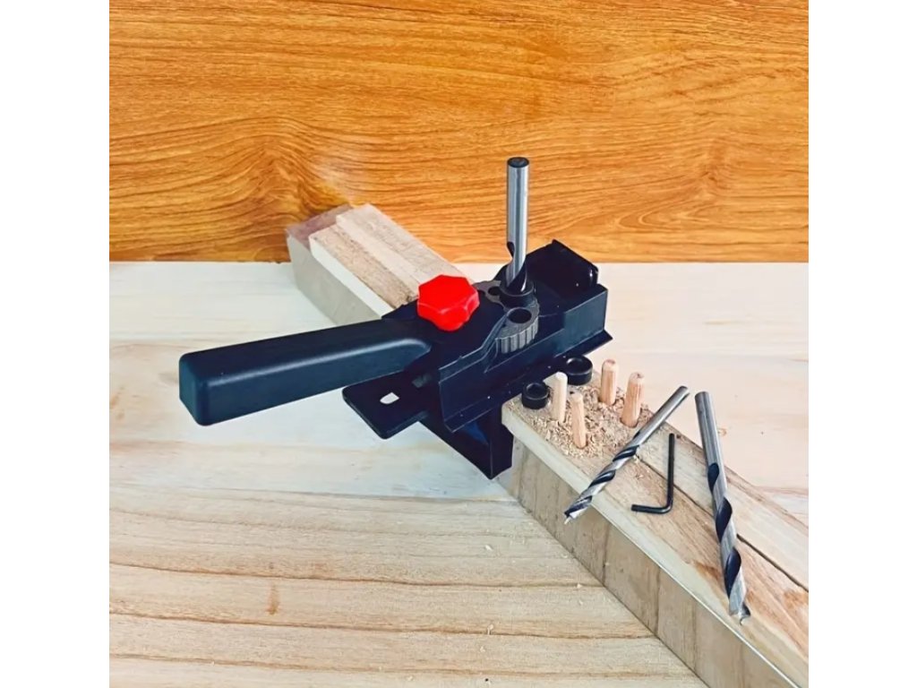 Práca s úžasným vodiacim nástrojom na vŕtanie do dreva je jednoduchá a intuitívna. Stačí nastaviť lokátor otvorov podľa požadovaného rozmeru, upevniť materiál a môžete začať. Ideálne pre začiatočníkov aj skúsených remeselníkov.