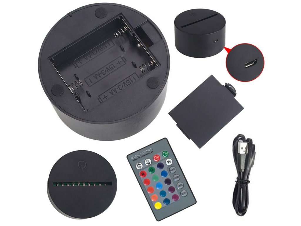 Používanie 3D lampy je mimoriadne jednoduché a zvládne ho aj dieťa. Stačí vložiť priehľadnú dosku do stojana a zapnúť pomocou dotykového tlačidla. Potom si už len užívajte farebné efekty za pomoci diaľkového ovládača.