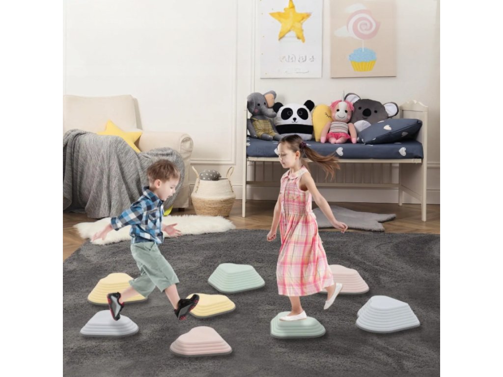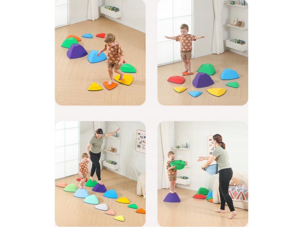 Vďaka rozdielnym tvarom a výškam ponúka praktická senzorická cesta – balančné kamene neobmedzené možnosti zostavovania. Deti si môžu vytvárať vlastné trasy, vyskúšať hru „podlaha je láva“ alebo zapojiť fantáziu pri dobrodružných prekážkových hrách.