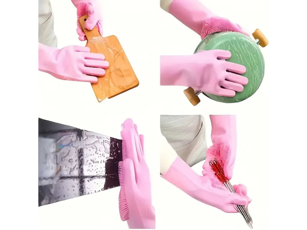 Rukavice na riad sú veľmi účinnou ochranou vašich rúk aj pri manipulácii s agresívnymi prípravkami. Zároveň, vďaka ich jedinečnému dizajnu získate účinnú pomôcku na umývanie.