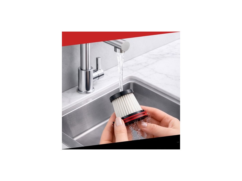 Vďaka filtru tento ručný vysávač nestráca na sile. Jeho sací výkon zostáva po celý čas konštantný. Filter sa dá ľahko vybrať a umyť pod tečúcou vodou.