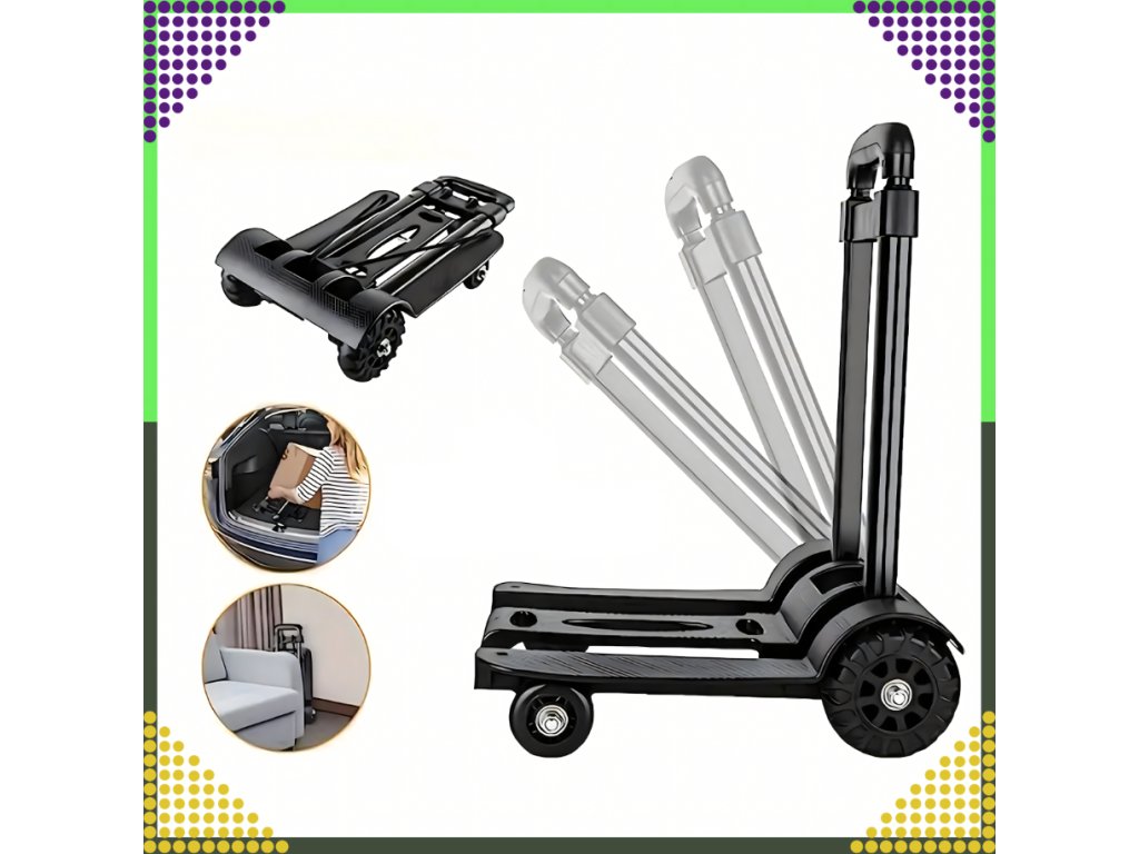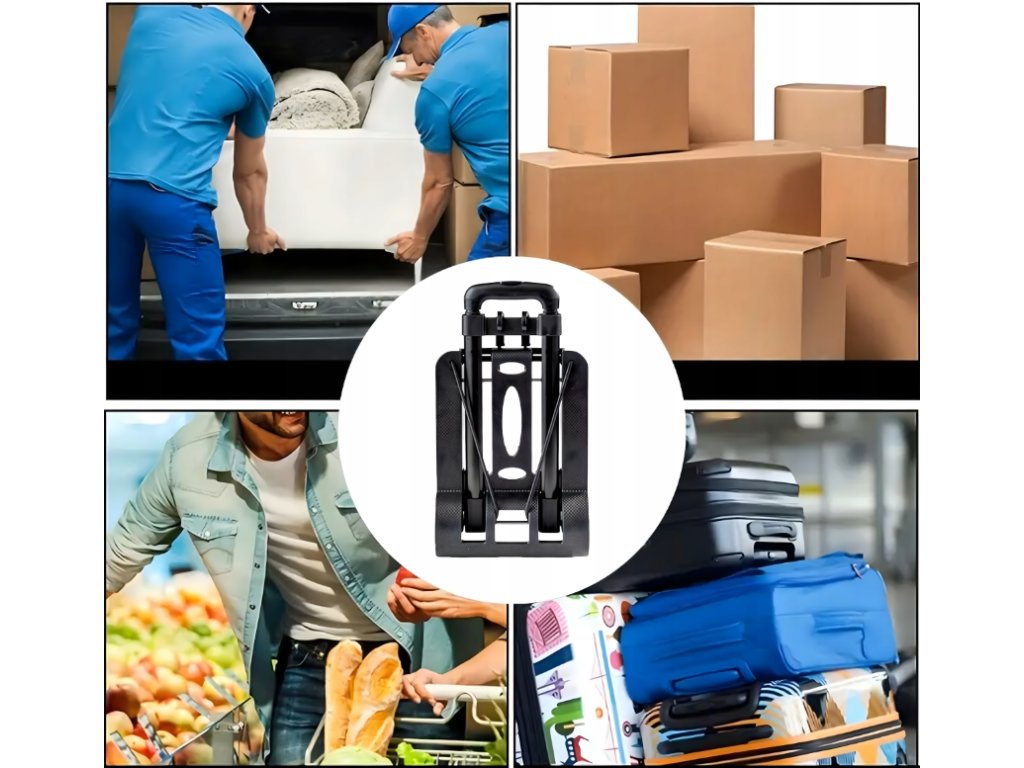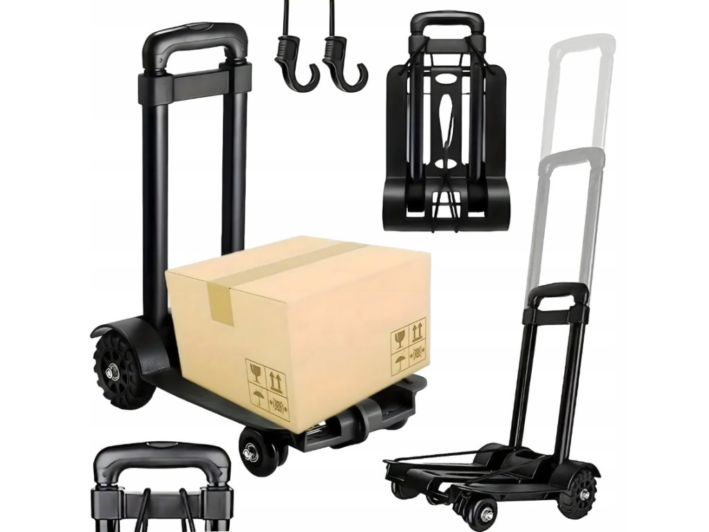Originálny skladací prepravný vozík na kolieskach vyniká pevnou a stabilnou konštrukciou, ktorá je zároveň mimoriadne ľahká. Kombinácia odolného hliníka a kvalitného plastu poskytuje ideálny pomer medzi nízkou hmotnosťou a vysokou trvácnosťou. Po zložení má vozík kompaktné rozmery, takže ho ľahko uložíte do kufra auta, šatníkovej skrine či zásuvky v kancelárii - bude vždy po ruke.