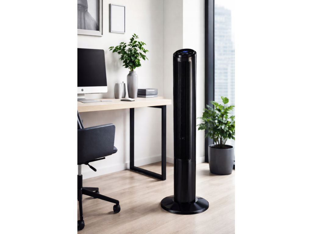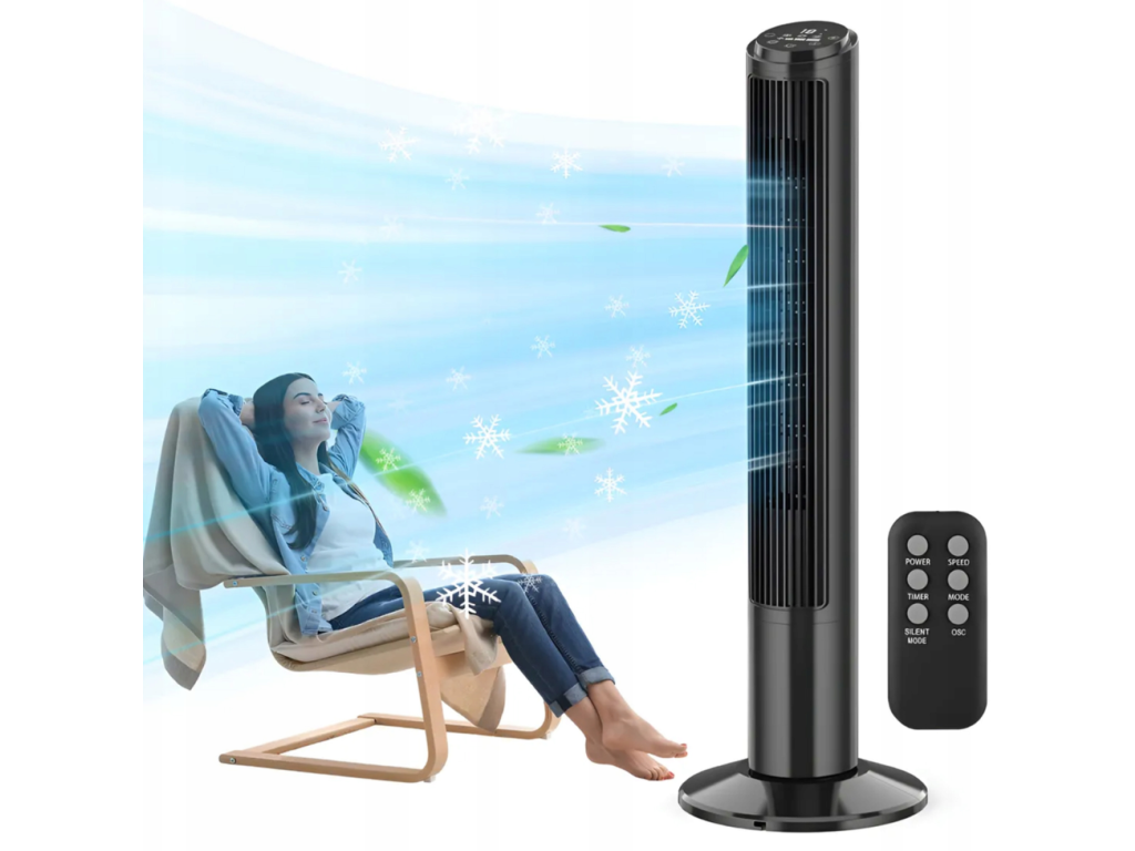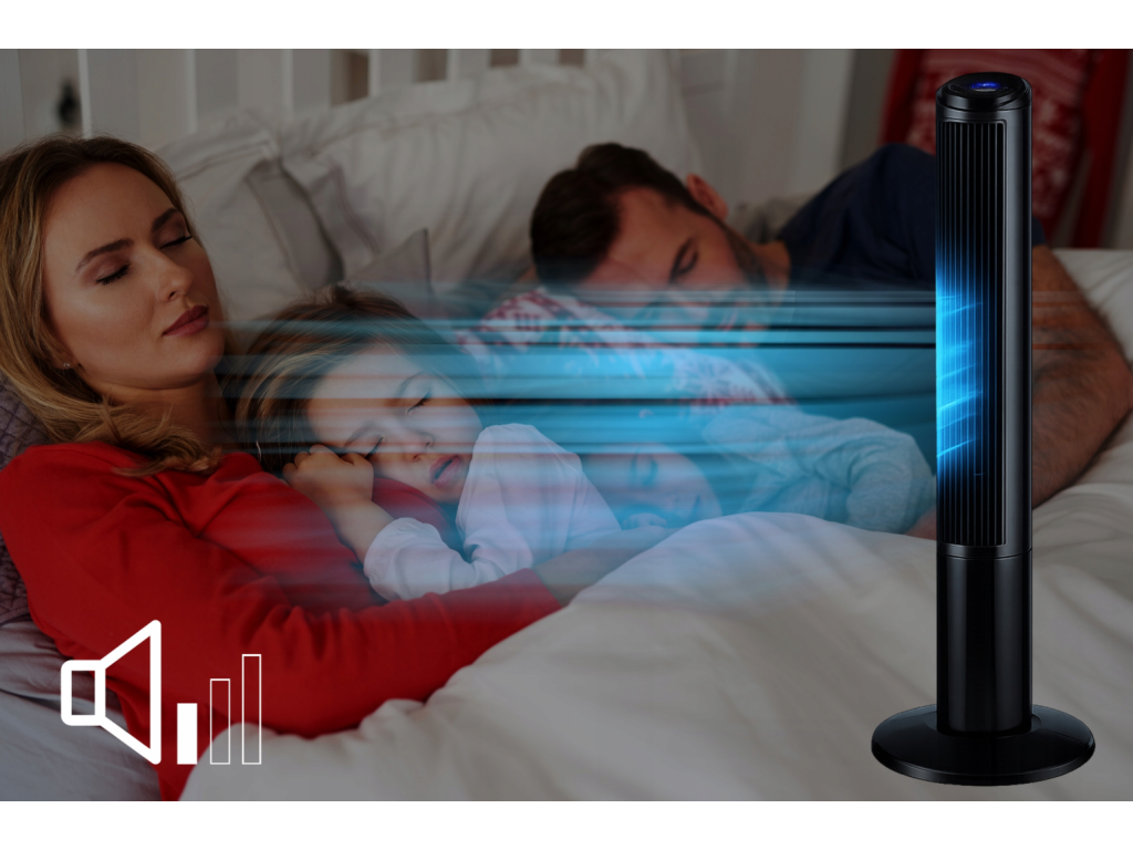 Stĺpový ventilátor poskytuje tri rýchlosti vzduchu, vďaka ktorým sa dokonale prispôsobí vašim potrebám. Zariadenie sa môže pochváliť tichou prevádzkou a elegantnou čiernou povrchovou úpravou, vďaka čomu je perfektným doplnkom do kancelárie a obývačky.