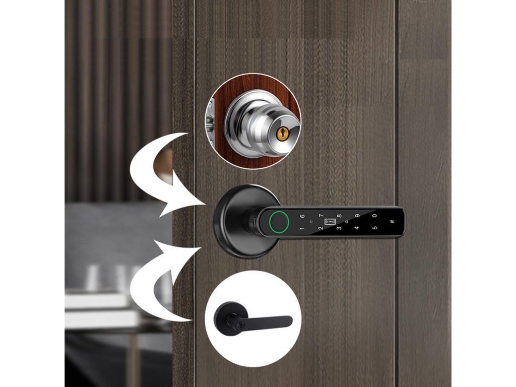 Univerzálny zámok s kľučkou a čítačkou odtlačkov je navrhnutý pre rýchlu a jednoduchú montáž na ľavé aj pravé dvere. Sada obsahuje všetko potrebné na inštaláciu, vrátane skrutkovača, zámkovej vložky a návodu. Stačí len pár krokov a bezpečný prístup máte pripravený.