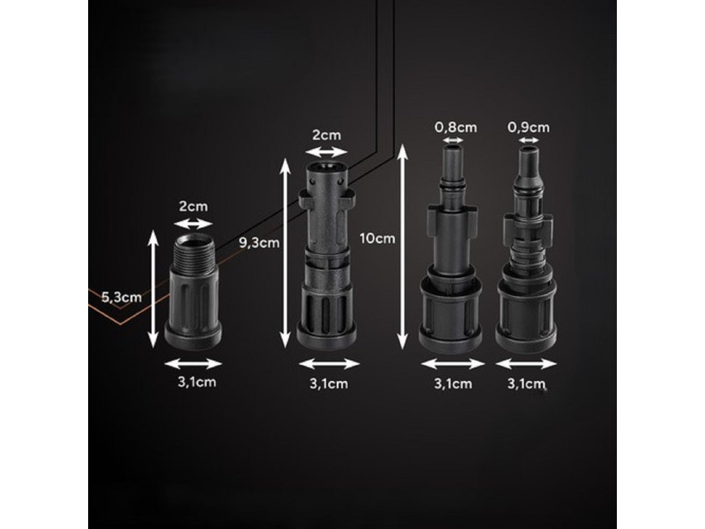 Na pripojenie hadice k tlakovému čističu nepotrebujete žiadne špeciálne zručnosti. Pomocou jedného z priložených adaptérov to môžete bez problémov zvládnuť behom pár sekúnd.