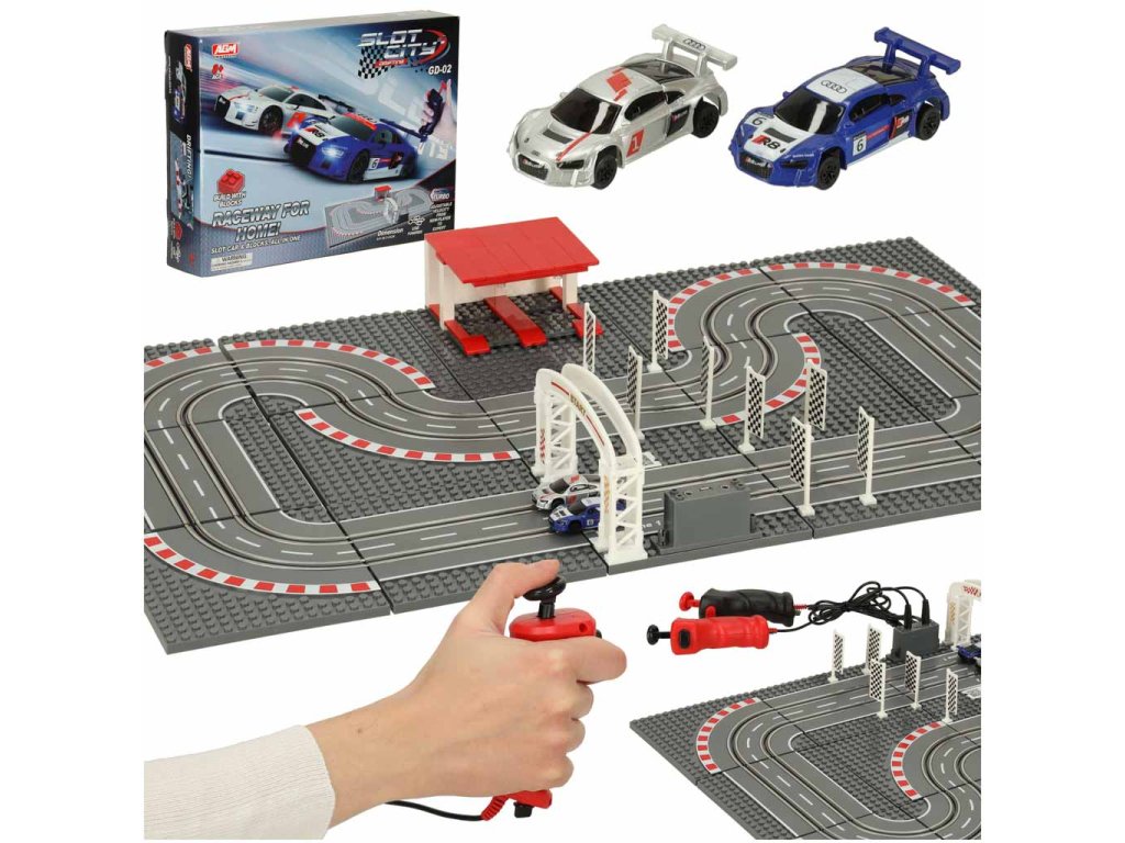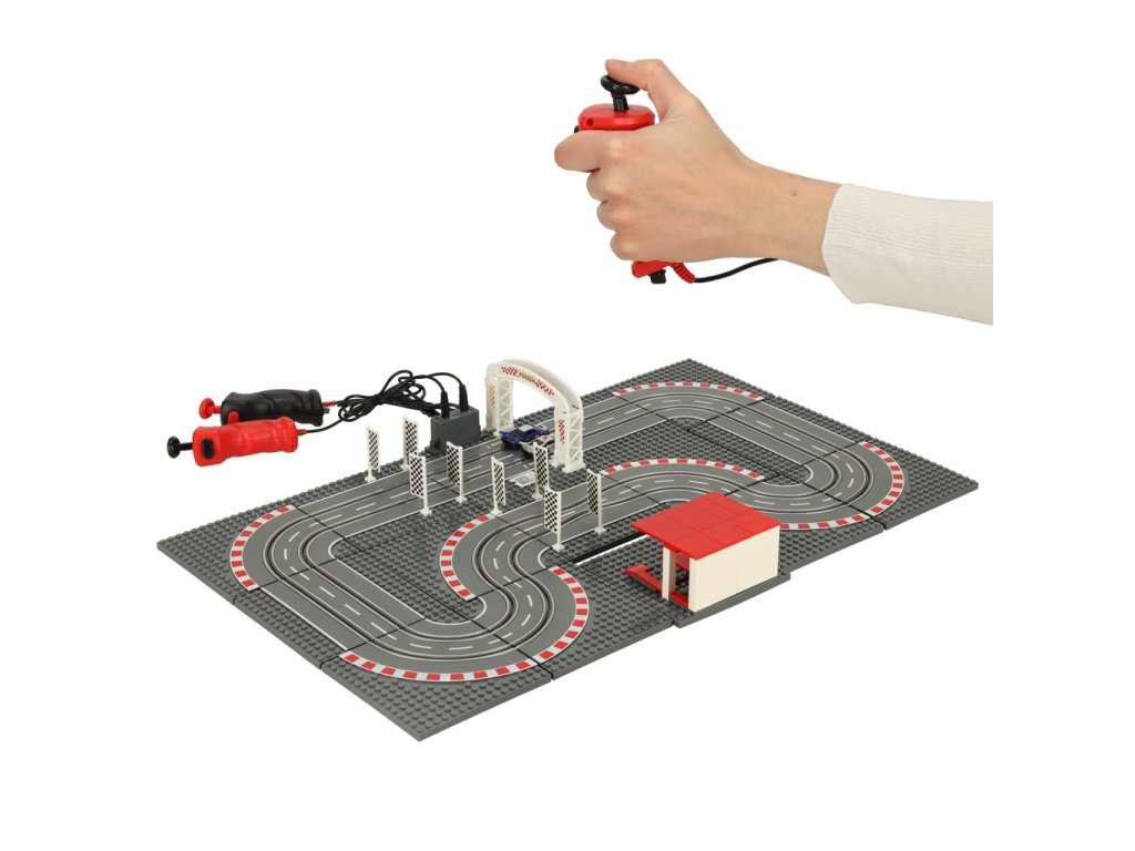 6 prudkých zákrut na trati o rozmere 38,5 x 64 cm zaručuje dynamickú hru plnú nečakaných obratov a napínavých momentov. Ovládanie pomocou precíznych joystickov dáva deťom úplnú kontrolu nad rýchlosťou jazdy.