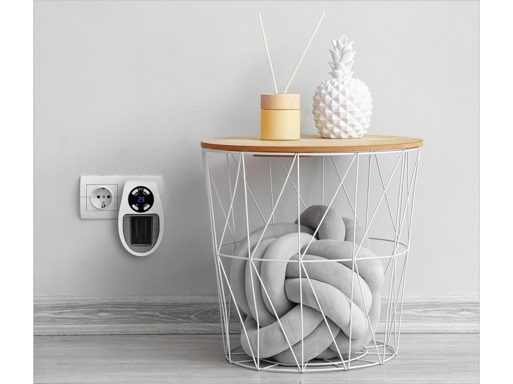Mini elektrický ohrievač do zásuvky je skvelé riešenie pre večerný relax alebo pracovné prostredie. Ovládať ho totiž môžete aj pomocou diaľkového ovládača, takže nemusíte prerušovať svoju činnosť. Teplotu, rýchlosť či časovač nastavíte jednoducho z pohodlia gauča.