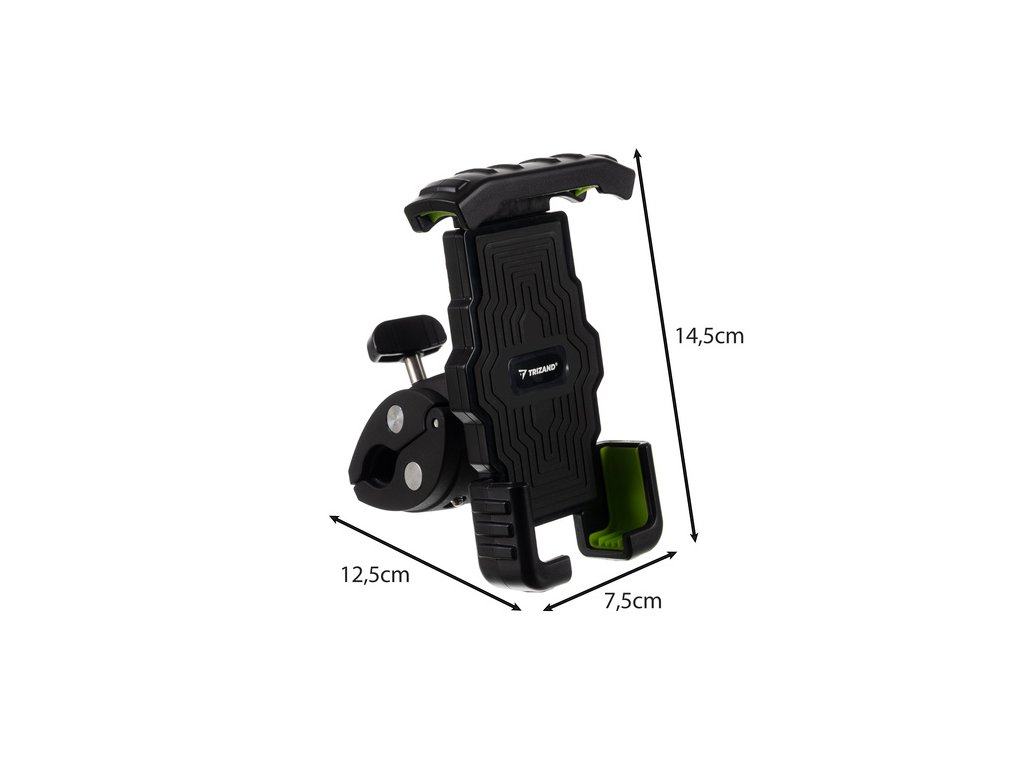 Držiak je určený na opakované umiestnenie na riadidlá bicykla. Časť, do ktorej sa vkladá telefón možno roztiahnuť podľa potreby, takže sa držiak ľahko prispôsobí väčšine mobilných telefónov. Pomocou plastového úchytu potom pripevníte telefón na riadidlá. Telefón tak budete mať na očiach. V prípade potreby môžete držiak opäť ľahko odopnúť a odložiť.