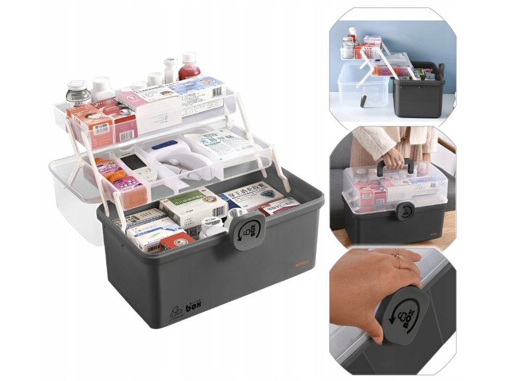 Praktický kufrík na lieky má široké využitie aj mimo zdravotníckej sféry. Poslúži vám ako úložný box na kozmetiku, laky na nechty, kadernícke doplnky, manikúru či šperky. Vďaka priehľadnému veku ľahko nájdete presne to, čo potrebujete – rýchlo a bez zbytočného hľadania.