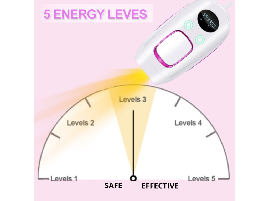 Výhodou tohto epilátora oproti iným metódam je, že dôkladne odstraňuje aj veľmi jemné chĺpky. Špeciálna IPL technológia pôsobí na rôzne druhy chĺpkov. Máte možnosť vybrať si z 5 úrovní výkonu pre prispôsobenú intenzitu ošetrenia na základe citlivosti pokožky a hrúbky chĺpkov. Vaša pokožka môže byť vďaka tomu hladká až na niekoľko týždňov.